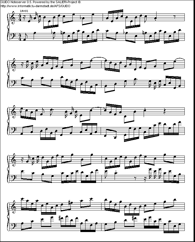 {(* voice 0 *)[\key<0> \tempo<"1/4=91"> \meter<"4/4"> _/16 e1/16 a1/16 c2/16 b1/16 e1/16 b1/16