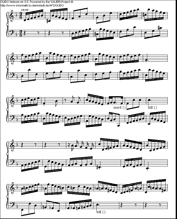 (* voice 1 *)[\key<-1> \tempo<"1/4=98"> \meter<"3/8"> _*3/4 d0/16 e0/16 f0/16 g0/16 a0/16 b&0/16