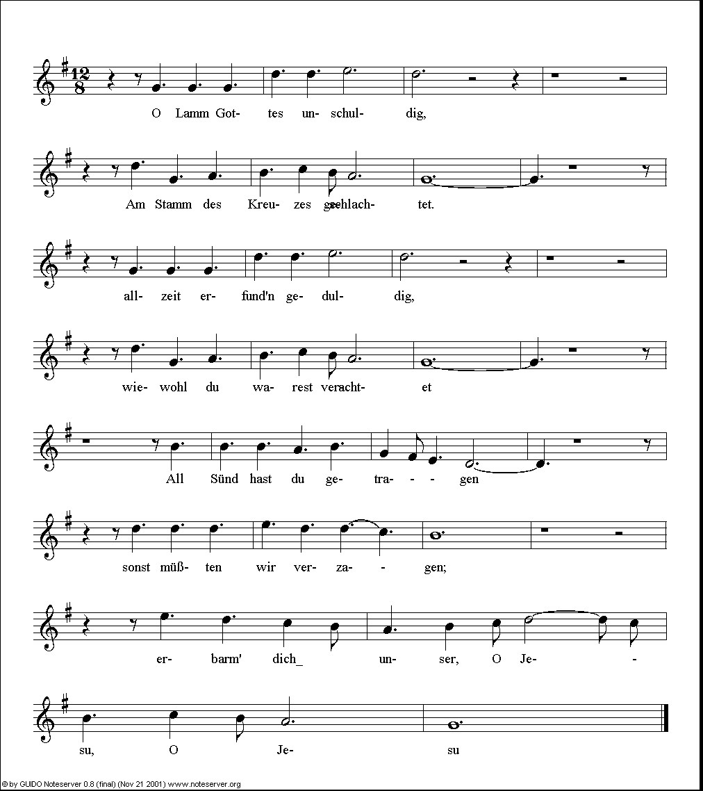 \lyrics<"O Lamm Got-tes un-schul-dig,">(