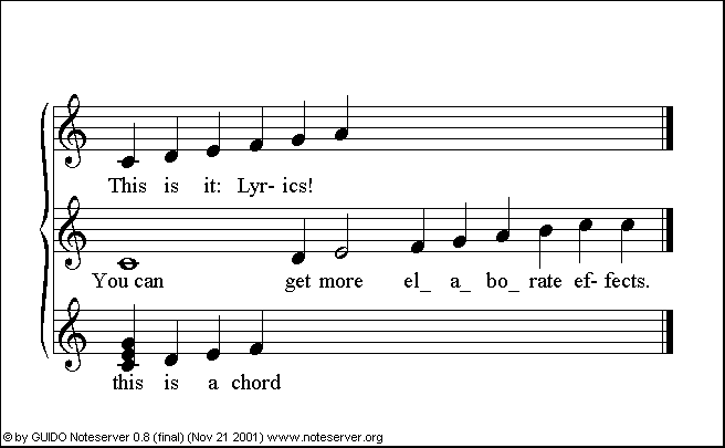 [ \lyrics<"this is a chord">( { c, e, g} d e f ) ]