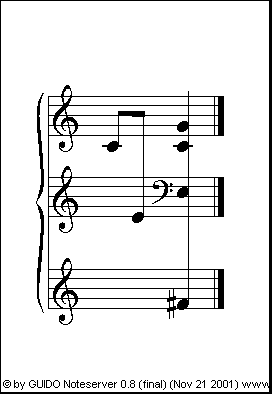 \staff<1> c/4 , \staff<2> e0 , \staff<1> g1, \staff<3> f# }